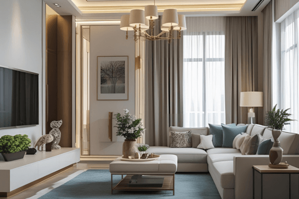 Nếu bạn yêu thích sự cầu kỳ, sang trọng nhưng vẫn muốn giữ nét hiện đại, thì phong cách tân cổ điển là lựa chọn lý tưởng. Thiết kế phòng khách theo phong cách này mang lại vẻ đẹp tinh tế, quý phái mà không hề lỗi thời.